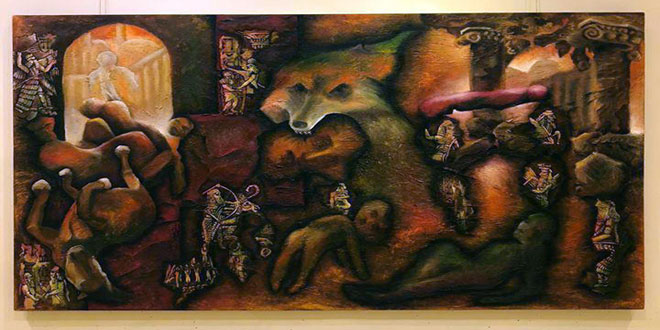 وتضمن المعرض نحو 30 لوحة بأحجام كبيرة بتقنية الزيتي على قماش وثقت من خلالها الفنانة رندة الحرب على سورية باسلوبها الخاص.