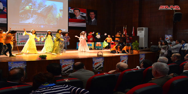 وتخلل الاحتفال الذي أقيم في مبنى المجمع التربوي بضاحية قدسيا بريف دمشق تكريم 40 عاملا من عمال النظافة في محافظة ريف دمشق وعرض لفيلم قصير عن النشاطات البيئية خلال العام الماضي وأعمال الوزارة ومديرياتها المعنية وفقرات فنية غنائية ومسرحية منوعة وحملة تشجير في حدائق المنطقة.