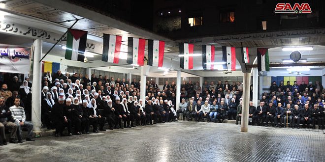 وأكد المشاركون وقوفهم إلى جانب أهلنا في الجولان السوري المحتل محيين مواقفهم البطولية وتحديهم لغطرسة الاحتلال الصهيوني وإفشالهم ما تسمى “انتخابات المجالس المحلية” في البلدات المحتلة وتمسكهم بهويتهم العربية السورية.