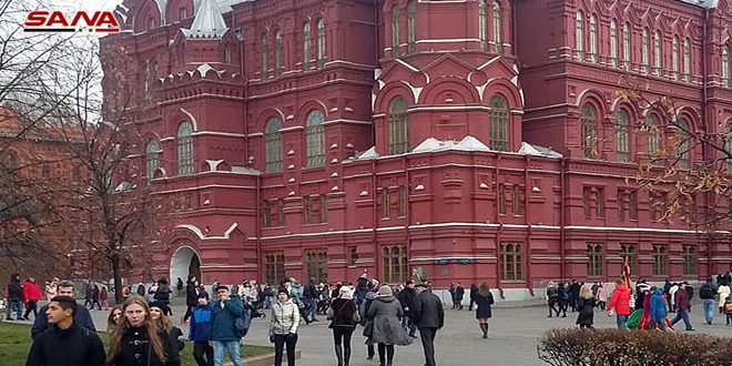 جال الوفد الإعلامي المشارك في الأسبوع الاعلامي السوري في موسكو بالساحة الحمراء الاكثر شهرة في العاصمة الروسية التي تعد مركزها وتأخذ شكل مربع في انشائها.