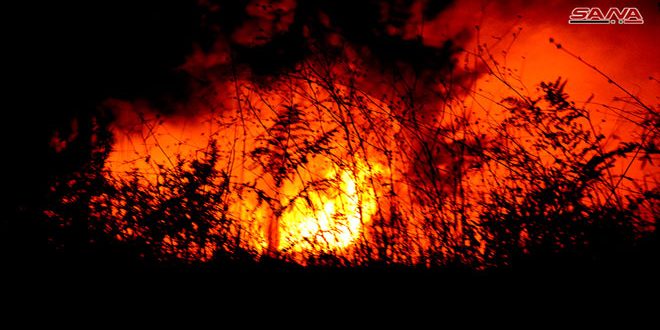 أخمد عناصر مكافحة الحرائق في مديرية زراعة اللاذقية بالتعاون مع الدفاع المدني والإطفاء 18 حريقا حراجيا في مناطق متفرقة بريف المحافظة أمس وصباح اليوم كان أوسعها حريقا شب في جبل الأربعين في منطقة القرداحة تم إخماده حوالي الساعة الخامسة صباحا تبعتها عمليات تبريد الموقع لمنع اشتعال النيران من جديد مع مراقبة الموقع لنحو 48 ساعة.
