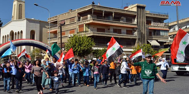 بمشاركة فعاليات أهلية وشبابية نظمت اليوم مديرية البيئة في دمشق بالتعاون مع محافظة دمشق مهرجانا بيئيا ومسيرا انطلق من ساحة العباسيين باتجاه حديقة البيئة بالتجارة وذلك ضمن نشاطات المهرجان البيئي الثاني بمناسبة اليوم الوطني للبيئة.
