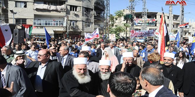 احتفالا بأعياد التشرينين نظمت جمعية ملتقى الاسرة السورية اليوم مهرجانا جماهيريا في مدينة سقبا بريف دمشق.