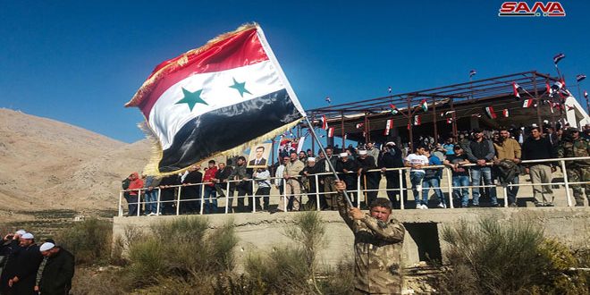 وفي الجانب المقابل لموقع عين التينة تحدى أبناء الجولان المحتل سلطات الاحتلال واعتصموا في بلدة مجدل شمس المحتلة مؤكدين أن الجولان كان وسيبقى سوريا رغم محاولات الكيان الصهيوني القمعية والتوسعية وان تاريخهم وقيمهم الوطنية التي توارثوها عن الأجداد والآباء وبطولات وتضحيات الجيش العربي السوري هي البوصلة التي يسيرون بهديها ولن يضيع حق وراءه مطالب.
