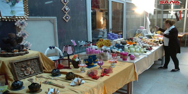 المهرجان الذي تقيمه اللجنة المناطقية للحزب الشيوعي واتحاد الشبيبة الشيوعية بالمحافظة تحت عنوان “سورية لن تركع” ضم معرضاً للأعمال اليدوية احتوى منتجات طبيعية لتدوير مخلفات البيئة ومجسمات فنية وتراثية وخاصة بطباعة الصور على الخشب ومجموعة من المطرزات والإكسسوارات.