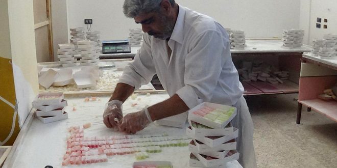 مع عودة الأمان والاستقرار إلى المحافظة استعاد صناع الراحة الحورانية الشهيرة حرفتهم بعد توقف عدد كبير من المعامل خلال سنوات الأزمة.