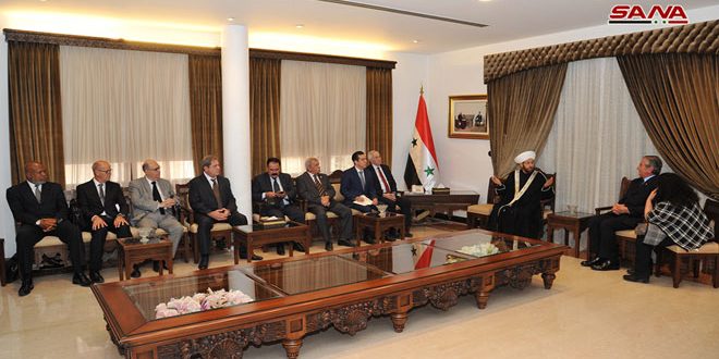 حذر سماحة المفتي العام للجمهورية الدكتور أحمد بدر الدين حسون خلال لقائه اليوم السيناتور فرناندو دي ميلو رئيس لجنة العلاقات الخارجية والدفاع الوطني في مجلس الشيوخ البرازيلي والوفد المرافق من أن الإرهاب الذي يستهدف سورية يشكل تهديداً للعالم أجمع.