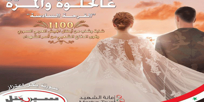 أطلقت شركة سيريتل ومؤسسة أمانة الشهيد التحضيرات لإقامة (الفرحة السادسة) ضمن مبادرة العرس الجماعي لـ 1100 شاب وشابة من أبطال الجيش العربي السوري ومجموعات الدفاع الشعبية من أسر الشهداء.