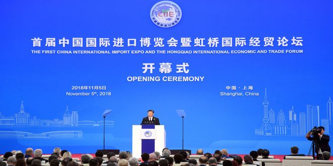 افتتح الرئيس الصيني شي جين بينغ اليوم معرض الصين الدولي الأول للواردات في مدينة شنغهاي بمشاركة أكثر من 130 دولة من بينها سورية.