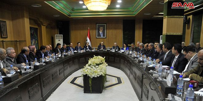 ترأس المهندس عماد خميس رئيس مجلس الوزراء اجتماعا في مبنى محافظة حلب بمشاركة عدد من الوزراء مساء اليوم تم خلاله بحث المخطط التنظيمي للمدينة والمخططات التفصيلية للمناطق وما تم إنجازه في هذا المجال وتذليل العقبات التي تعوق العمل.
