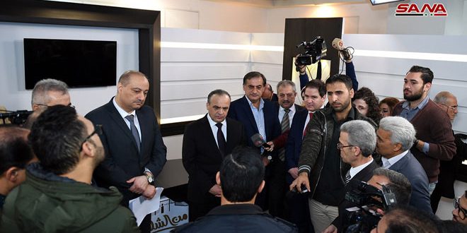 زار رئيس مجلس الوزراء المهندس عماد خميس وعدد من الوزراء المركز الإذاعي والتلفزيوني في مدينة حلب ومقر الإذاعة واطلعوا على سير العمل فيهما ومتطلبات كوادر العمل لجهة التدريب وتأمين التجهيزات ورفع قيمة التعويضات للصحفيين.