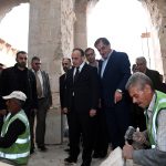 واطلع المهندس خميس على أعمال ترميم الجامع الأموي الكبير في مدينة حلب القديمة التي تتم يدويا بحرفية عالية ودقة وإشراف متكاملين لإعادة كل حجر إلى مكانه الأصلي بناء على التوثيق القديم للمدينة.