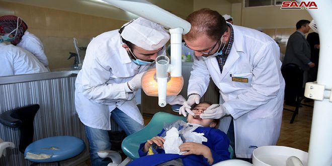 وأوضح حلبية في لقاء مع سانا أن كلية طب الأسنان العريقة تقدم خدمات علاجية جليلة للمجتمع وبمستوى وكفاءة طبية عالية ومتميزة نتيجة إجراء هذه العلاجات من قبل طلاب السنوات الأخيرة والدراسات العليا بمختلف الاختصاصات كجراحة الفم والفكين والتقويم والتعويضات السنية الثابتة والمتحركة ومداواة الأسنان والأطفال وهي مجانية بالكامل باستثناء بعض الحالات البسيطة التي تحتاج إلى تكلفة المخابر مؤكدا أن مستوى العلاج المقدم في الكلية يضاهي مثيله في العيادات الخارجية باعتبار أن من يؤديه طلاب متخصصون وبإشراف أعضاء الهيئة التدريسية في الكلية.