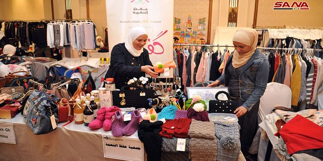 فريق سانا زار أحد البازارات التي تشارك بها الجمعية لعرض منتجات المشروع حيث تشكل البازارات والمعارض فرصة لتسويق هذه المنتجات من أعمال تريكو واكسسوارات وصناعة مواد غذائية متنوعة منها الحلويات والمربيات والمؤونة المنزلية المختلفة بحسب ما أوضحت عضو مجلس إدارة الجمعية عبير العلبي في تصريح لـ سانا.