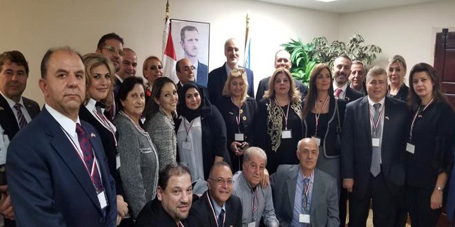 أكد وفد من الجالية السورية الاغترابية في الولايات المتحدة الأمريكية وكندا تضامنهم مع وطنهم الأم شعباً وجيشاً وقيادة في مواجهة الإرهاب ورفض أي مفاعيل سياسية له معبرين عن فخرهم واعتزازهم بانتصارات وبطولات الجيش العربي السوري.