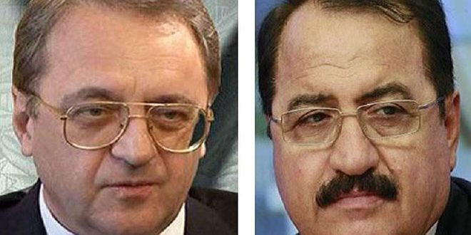 بحث المبعوث الخاص للرئيس الروسي إلى الشرق الأوسط ودول إفريقيا نائب وزير الخارجية ميخائيل بوغدانوف مع سفير سورية لدى روسيا الدكتور رياض حداد اليوم الوضع في سورية وعودة المهجرين السوريين جراء الإرهاب إلى بلدهم.