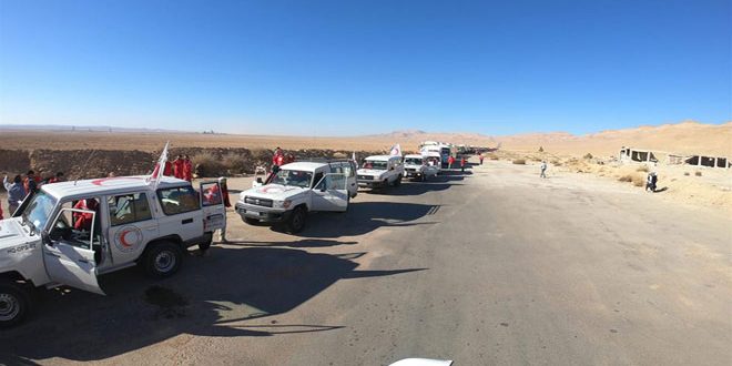 يذكر أنه بالتعاون وتسهيل من الحكومة السورية قامت منظمة الهلال الأحمر العربي السوري والأمم المتحدة السبت الفائت بتسيير قافلة إنسانية إلى المهجرين السوريين المقيمين في مخيم الركبان مؤلفة من 78 شاحنة محملة بمواد إغاثية تضمنت 10475 سلة غذائية ومثلها أكياس طحين و18 ألف سلة ألبسة أطفال و 10075 سلة من مواد النظافة الشخصية ومثلها شوادر و1200 سلة لحديثي الولادة إضافة إلى أدوية ومواد طبية ومتممات غذائية للأطفال والنساء وذلك برفقة 107 من متطوعيها وفريق مختص لتقديم اللقاحات للأطفال.