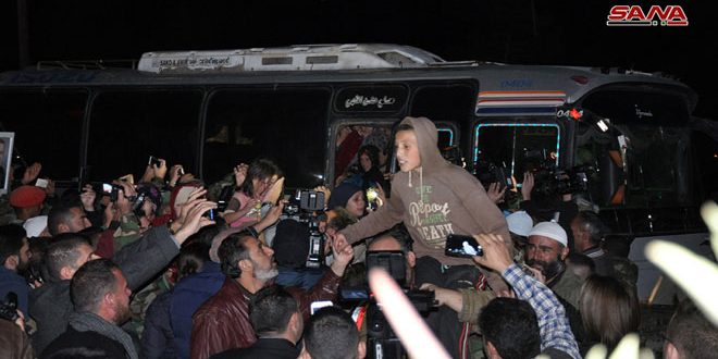 ووجه أهالي المختطفين المحررين الذين رفعوا أعلام الوطن وصور السيد الرئيس بشار الأسد التحية والشكر للرئيس الأسد ولبواسل جيشنا البطل الذين سطروا اليوم ملحمة بطولية جديدة تضاف إلى ملاحم العزة والبطولة والانتصارات التي يسطرنوها على امتداد ساحة الوطن ضد الإرهاب.