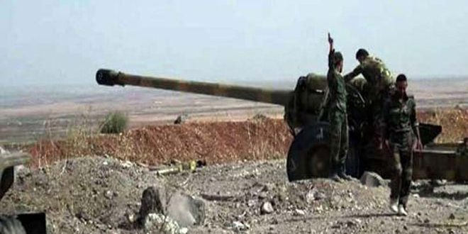 وأوقعت وحدات من الجيش أمس الأول قتلى ومصابين في صفوف مجموعات إرهابية بعضها تابع لـ “الحزب التركستاني” حاولت التسلل باتجاه النقاط العسكرية المتمركزة في محيط بلدة المصاصنة بالريف الشمالي لحماة.