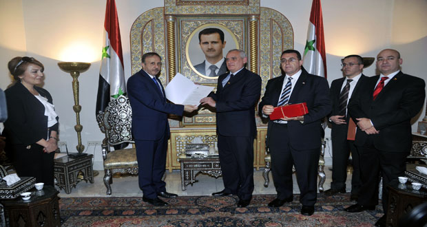تسلم رئيس مجلس الشعب محمد جهاد اللحام خلال لقائه وفداً من منظمة فيا أراب والجالية السورية في فنزويلا رسالة تضامنية من رئيس الجمعية الوطنية في فنزويلا البوليفارية ديوسدادو كابييو روندون.