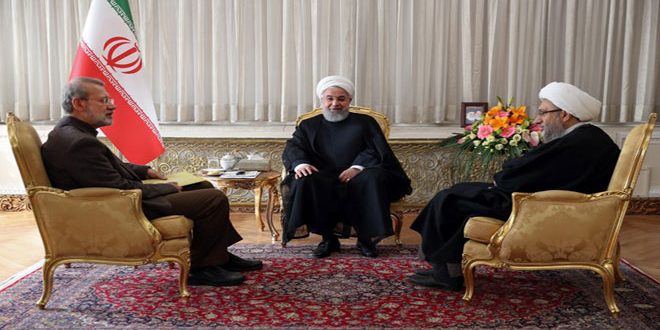وأشار روحاني على هامش اجتماع السلطات الثلاث إلى أنه ليس بإمكان الولايات المتحدة وقف صادرات النفط الإيراني بشكل كلي وأن التهديدات الأمريكية بفرض حظر ليست سوى “تهويل وحرب نفسية ولا تؤثر في الاقتصاد الإيراني” .