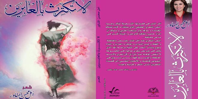 “لا تكترث بالعابرين” مجموعة شعرية صدرت حديثا للشاعرة أمل المناور تعتمد في أسسها العاطفة ومحبة الوطن برموزه وفق أسلوب شعر الشطرين بنسق عفوي هيمن على كل قصائد المجموعة.