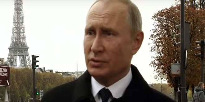 وقال بوتين خلال مقابلة مع قناة (آر تي) الناطقة باللغة الفرنسية على هامش مراسم الاحتفالات بالذكرى المئوية لانتهاء الحرب العالمية الأولى في باريس: “نحن مستعدون للحوار.. ولسنا نحن من ينسحب من اتفاقية الحد من الصواريخ القصيرة والمتوسطة المدى.. بل الأمريكيون هم من يريدون ذلك”.