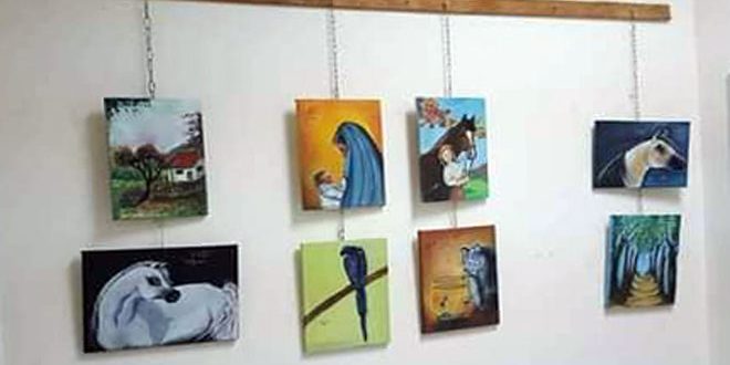لوحات زيتية منوعة تضمنها المعرض الفني الذي أقيم مؤخرا في المركز الثقافي في مرمريتا بريف حمص شارك فيه عشرون يافعا وطفلا حيث تنوعت موضوعات المعرض الذي حمل عنوان “لوحات فتية” لتشمل الطبيعة والواقع الحياتي اليومي إلى جانب الشخصيات الكرتونية التي تزخر بها مخيلة المشاركين.