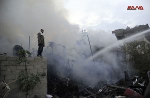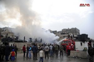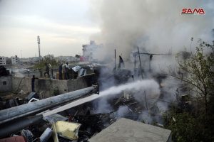 أخمد عناصر فوج اطفاء دمشق حريقا نشب فى منطقة الدويلعة بدمشق عصر اليوم وأدى إلى تصاعد دخان كثيف فوق المنطقة.