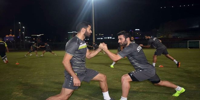 وأجرى منتخبنا الوطني حصة تدريبية أمس تضمنت تمارين تكتيكية على بناء الهجمات وسرعة التمرير وتقارب الخطوط وشارك فيها كل اللاعبين باستثناء عمر السومة الذي التحق بالبعثة مؤخرا وعمر خريبين الذي سيستكمل علاجه من إصابته في دبي بعد اطلاع إدارة المنتخب والكادر الطبي على التقرير الطبي الخاص به.
