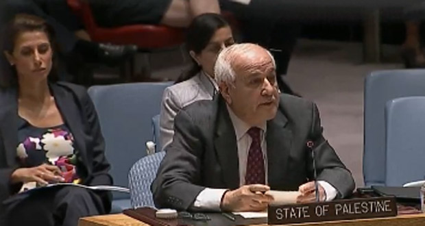 دعا سفير فلسطين لدى الامم المتحدة رياض منصور إلى مطالبة سلطات الاحتلال الاسرائيلي بالوقف الفوري والكامل لكل نشاطاتها الاستيطانية غير المشروعة في الأراضي الفلسطينية المحتلة بما فيها القدس الشرقية.