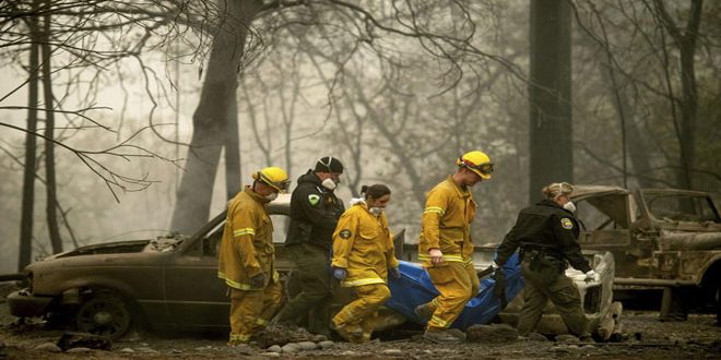 أعلنت السلطات المحلية في ولاية كاليفورنيا الأميركية اليوم ارتفاع عدد قتلى حرائق الغابات في الولاية الى 66 واعتبار أكثر من 630 آخرين في عداد المفقودين.