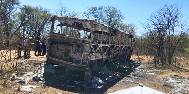 ونقلت وكالة الأنباء الصينية شينخوا عن المتحدثة باسم شرطة زيمبابوي تشاريتي تشارامبا قولها اليوم: إن “الحريق اندلع في الحافلة الليلة الماضية فيما كانت متوجهة إلى جنوب أفريقيا وتسبب بمصرع 42 شخصاً على الأقل” مشيرة إلى أن أسباب الحادث لم تعرف.
