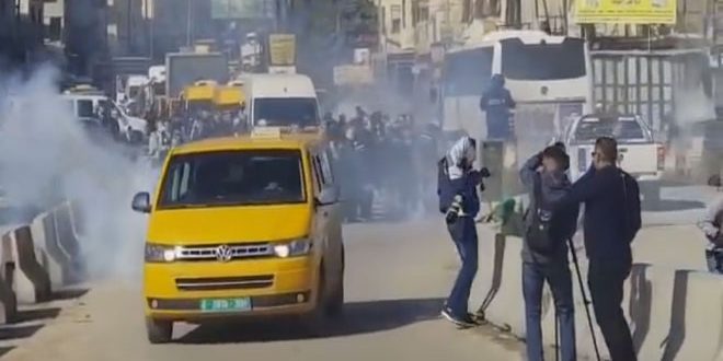 إصابة عشرات الصحفيين بحالات اختناق جراء قمع الاحتلال مسيرة شمال القدس