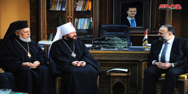 أكد وزير الأوقاف الدكتور محمد عبد الستار السيد خلال لقائه اليوم مدير إدارة العلاقات الخارجية للكنيسة الأرثوذكسية في موسكو المطران هيلاريون والوفد المرافق تقدير سورية للدور الذي قامت به جمهورية روسيا الاتحادية قيادة وحكومة وشعباً لدعم ومساندة سورية في حربها ضد الإرهاب.
