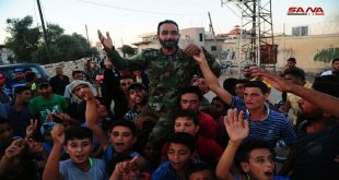 وعبر محمد الخوالدة أحد وجهاء العشائر عن شعوره بالفرحة لمشاركته في هذه المناسبة بعد الانتصارات الكبيرة التي حققها الجيش العربي السوري على الإرهاب على امتداد الوطن.
