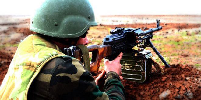 وذكر المراسل أن إحدى وحدات الجيش المتمركزة في تلة الحماميات رصدت محاولة تسلل إرهابيين مما يسمى “كتائب العزة” باتجاه عدد من النقاط العسكرية على أطراف المنطقة منزوعة السلاح في محيط بلدة الجيسات بريف حماة الشمالي مستغلين طبيعة المنطقة التي تنتشر فيها الجروف الصخرية والضباب الكثيف حيث تعاملت معهم بالأسلحة المناسبة وأوقعت في صفوفهم خسائر بالأفراد والعتاد وأجبرت من تبقى على الفرار نحو الحدود الإدارية لمحافظة إدلب.