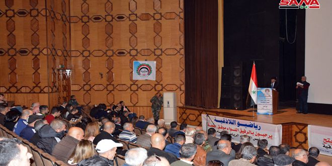 طالب أعضاء المؤتمر السنوي لفرع الاتحاد الرياضي في اللاذقية الذي عقد اليوم بإنشاء صالة رياضية لممارسة مختلف الألعاب وافتتاح مراكز نوعية للألعاب المتميزة وإعادة تأهيل مقرات الأندية الريفية.