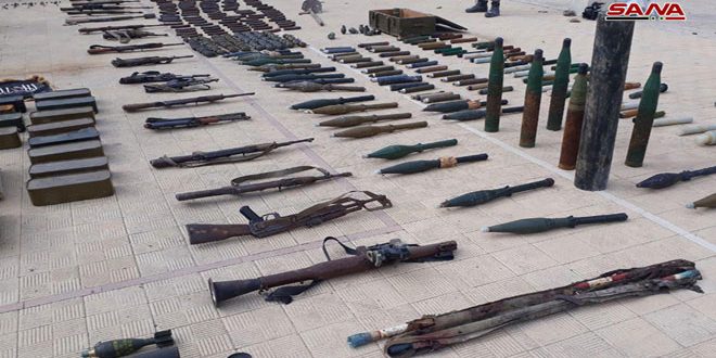 وعثرت الجهات المختصة السبت الماضي خلال تمشيط البلدات المحررة جنوب دمشق وبالتعاون مع الأهالي على كمية كبيرة من الذخائر والأسلحة والصواريخ بعضها أمريكي الصنع في إحدى المزارع بين بلدتي ببيلا وبيت سحم من مخلفات المجموعات الإرهابية.