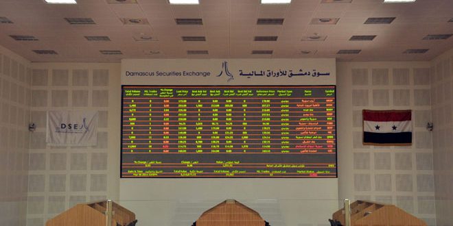 اختتمت سوق دمشق للأوراق المالية أسبوع التداولات الثالث من شهر تشرين الثاني الحالي على حجم تداول قدره 246377 سهما موزعة على 253 صفقة بقيمة تداولات اجمالية بلغت 758ر171 مليون ليرة سورية.