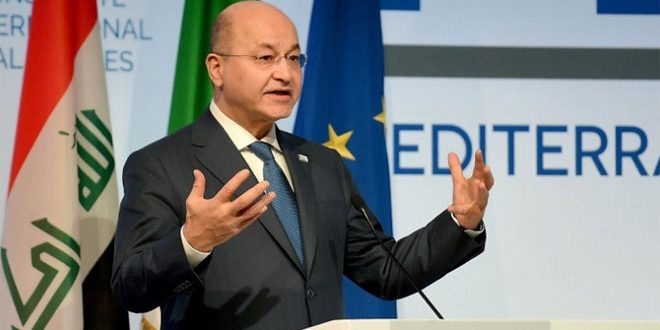 ونقلت وكالة أنباء الإعلام العراقي عن صالح قوله في مؤتمر حوارات المتوسط المنعقد في روما إن “الوقت حان لاستقرار وازدهار العراق وتحويل ذلك إلى مصلحة مشتركة لدى دول الجوار” مبينا أن العراق بلد مهم في المنطقة من الناحيتين الاقتصادية والاجتماعية.