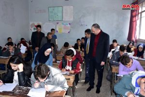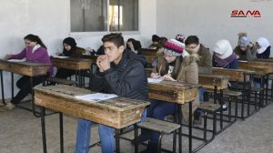 وفي السويداء تنافس 243 طالبا وطالبة في اختبارات المرحلة الثالثة وذلك في ثانوية الشهيد هايل مرشد التجارية.