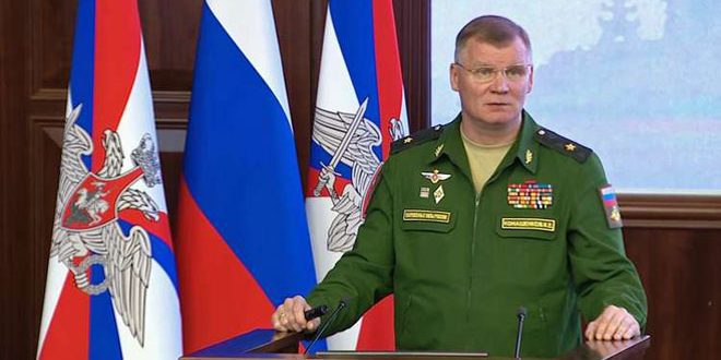 وأشار كوناشينكوف إلى أنه استنادا إلى المعلومات الاستخباراتية أغارت الطائرات الحربية الروسية على مواقع الإرهابيين التي قصفوا منها مدينة حلب بالذخائر المحشوة بالمواد الكيميائية ما أسفر عن تدمير الأهداف المحددة كافة.
