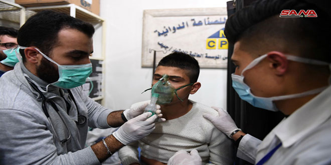 وكان أصيب أول أمس 107 مدنيين بحالات اختناق جراء استهداف التنظيمات الإرهابية المنتشرة فى ريف حلب بقذائف تحوى غازات سامة أحياء الخالدية وشارع النيل وجمعية الزهراء فى مدينة حلب.