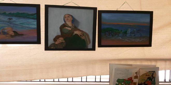 وتعرف رواد المركز على التجربة الفنية لكل من الفنانين باسل عثمان وملك مصمص من خلال لوحات فنية متنوعة اختارت في مجملها التعبيرية والواقعية والطبيعة الصامتة والبورتريه مستخدمين الألوان الزيتية والمائية.