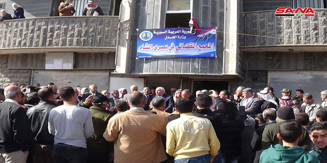 تم اليوم افتتاح مجمع قضائي في مدينة بصرى الشام واستئناف العمل في محكمتي الصلح ببلدتي المسيفرة وخربة غزالة بريف درعا في إطار الجهود الرامية إلى إعادة وتفعيل جميع مؤسسات الدولة في المناطق المحررة من الإرهاب في المنطقة الجنوبية.