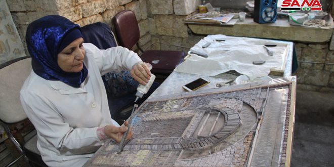 فنانون من اختصاصات متنوعة تجمعوا في “جمعية العاديات” التي تعنى بالتراث والتاريخ وحماية الآثار بحلب وكلهم تصميم وإصرار على بث الروح بفن “الفسيفساء” عبر إبداعات فنية ولوحات يتم صنعها باستخدام مكعبات صغيرة وحبيبات ملونة ترصف بدقة متناهية وقد تستغرق شهورا لإظهار مكنونات مبدعها.