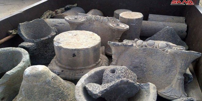استعادة 103 قطع أثرية في بلدة الجيزة بريف درعا