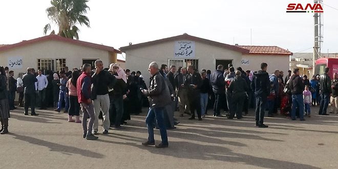 وأوضح العقيد مازن غندور رئيس مركز هجرة نصيب في تصريح صحفي أن المعبر شهد عودة عشرات الأشخاص المهجرين من مخيمات اللجوء في الأردن اليوم وهم من المواطنين الذين هربوا من بطش الجماعات الإرهابية سابقا لافتا إلى أن المركز أعلم الجهات المعنية حيث تم على الفور تأمين كل ما يلزمهم كما تم تجهيز وسائط النقل ونقطة طبية لتقديم العلاج لمن يحتاجه وتسهيل دخولهم سواء ممن يحملون جوازات سفر أو ممن فقدوا وثائقهم وعادوا بتذاكر مرور مؤقتة.