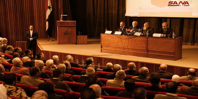 أقامت اللجنة الشعبية العربية السورية لدعم الشعب الفلسطيني ومقاومة المشروع الصهيوني “الملتقى الوطني والقومي” بمناسبة اليوم العالمي للتضامن مع الشعب الفلسطيني بعنوان “مناهضة التطبيع ومواجهة مشاريع تصفية الحقوق الفلسطينية” على مدرج مكتبة الأسد الوطنية بدمشق.